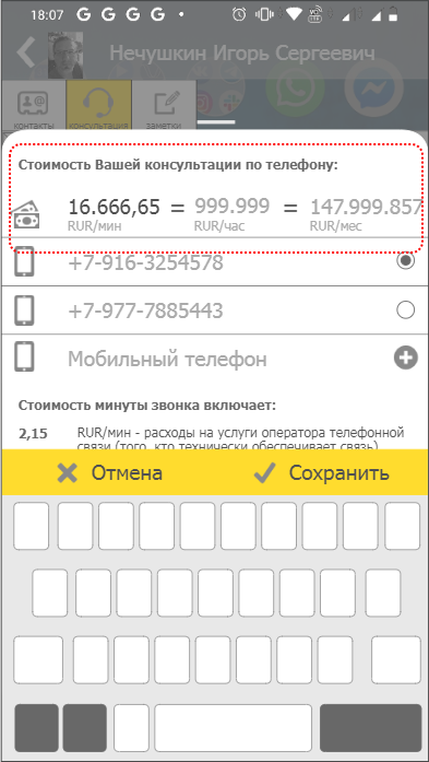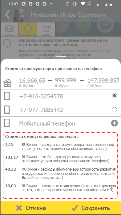 Настройка стоимости настолько удобна, что позволяет сразу понять как цена минуты разговора складывается в стоимость часа и какому месячному доходу она соответствует