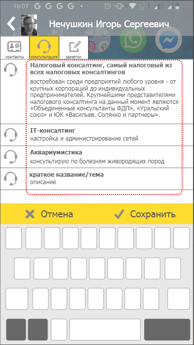 Ваш личный профиль содержит вкладку "консультация", в ней Вы можете добавить любое количество типов знаний, которыми Вы обладаете и хотите их продавать